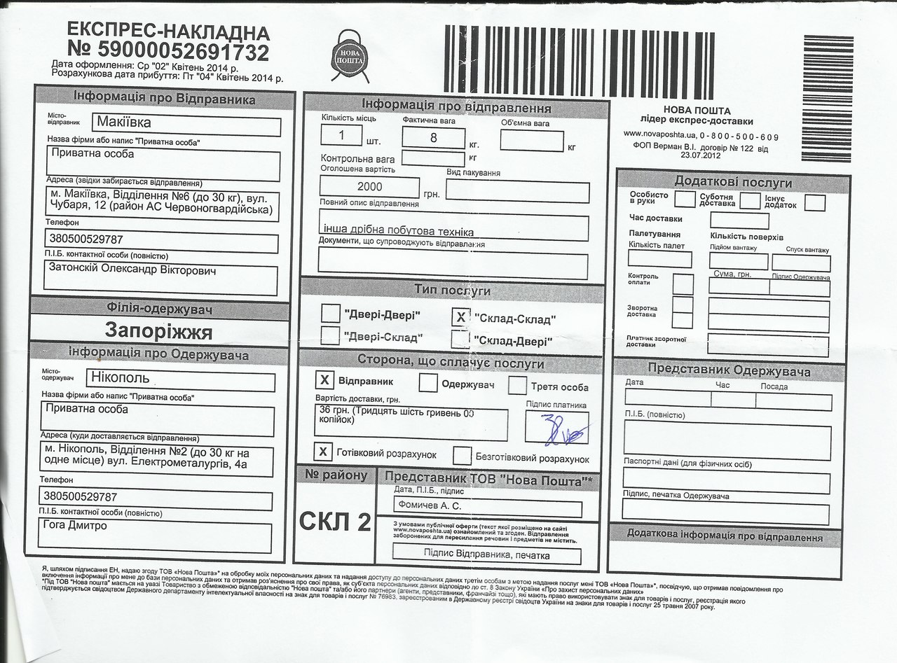 Цитата(perceval @ 5.1.2013, 15:15)  Кравченко Игорь Даниилович. г. Донецк. 050-428-00-01. Склад №2 по ул. Таврическая, 139. Почтовый ящик i2911@yandex.ru