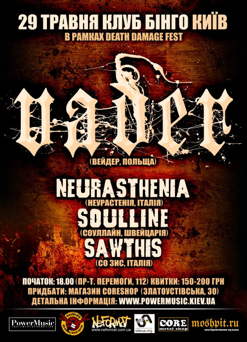 Уважаемые друзья! Спешим сообщить, что 29 мая, Киев посетят легенды польского дез метала, группа VADER.