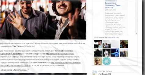 (IMG:img?url=http://i.piccy.info/i7/b9161361c096815d3223be4ea4baf062/4-57-758/32259830/Golova_2.jpg) Новые интервью группы «Тим Талер» Архив публикаций нашего сайта пополнился двумя материалами, обнародованными онлайн накануне апреля. Небольшое интервью обзорного характера от Карины Дядьо для портала 'GolovaPR' читайте здесь. Портал «Донецкий циник», вопреки хлёсткому названию, польстил нам огромным комплиментом длиною в целый текст, ознакомиться с которым можно, щёлкнув сюда. Автор комплимента пожелал сохранить анонимность. Спасибо журналистам за доброжелательное отношение к группе «Тим Талер». Особая благодарность Елене Самойленко, а также всей кафедре журналистики ДонНУ за информационное сотрудничество. |