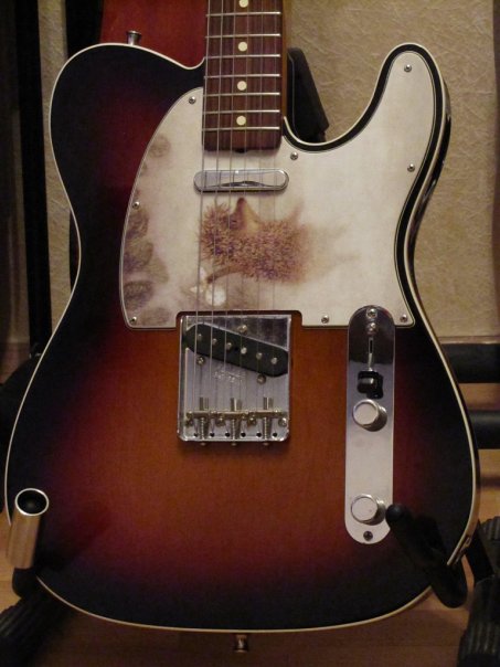 После долгих размышлений и приценок я таки вступил в клуб телекастеровладельцев. Собсна, купил такую вешчь: Fender Power Telecaster 2004-го года рождения, американец, корпус - ясень, гриф - клён без накладки. Стереовыход (один канал - сигнал с магнитных датчиков, другой - с пьезы, установленной в бридже). По сути - тот же american standart, только еще и с пьезой. До этого имел Godin SD. Ощущения необычные, приходится заново искать подход к инструменту. Очень много динамики, совсем другая отдача. Но с каждым днем инструмент нравится все сильнее и сильнее. Не любит много гейна, но благодарно истекает соком на малых позициях этого самого гейна (в ламповый преамп). Пьеза - звучит изумительно в линию, если не играть сильной атакой боем, тогда, конечно, чувствуется отсутствие полой деки. Пробую играть одновременно магнитом в перегруз и комбайн и пьезу в линию. Получается хм.. интересно. Прикрепляю несколько фото (IMG: img?url=http://cs9535.vkontakte.ru/u13858128/122173272/x_91135d4a.jpg) (IMG: img?url=http://cs9535.vkontakte.ru/u13858128/122173272/x_3e867fbe.jpg) (IMG: img?url=http://cs9535.vkontakte.ru/u13858128/122173272/x_dd9b431e.jpg) Если есть желание пощупать, меня можно найти тут или же в личке. Да, приобретен в харьковском магазине Саундчек, туда возят с ебея различные интересные вёсла. Я собирался самостоятельно приобретать на ебее, только совершенно случайно в харькове наткнулся на этот магазин. Потом дома две недели думал-думал, приехал да забрал.