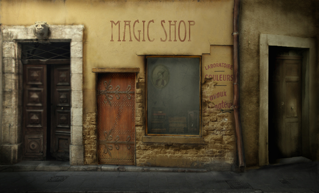 надпсь магик шоп стоило сделать всежна вывеске какой-нибудь винтажной, либо добавить к шрифту с эффектом еще и затертости побольше, реализьму так сказать.
