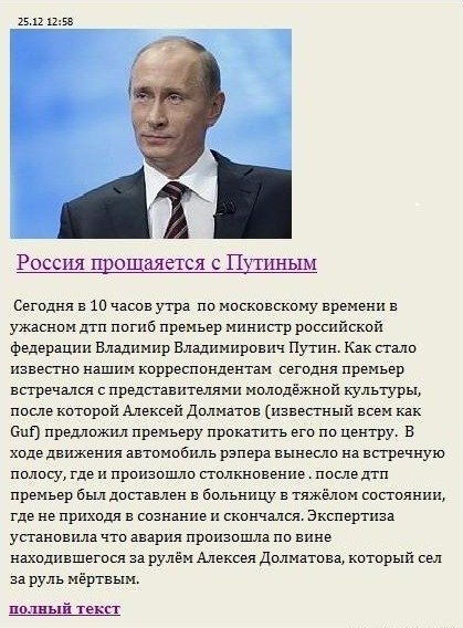 Цитата(qwert @ 21.2.2012, 14:51)  Цитирующий-это я. А я, как и любая творческая личность, очень ранимый. т.е. Артём Николаевич это ты? А нафига? Цитата(Artyom @ 21.2.2012, 16:48)  Кто-нибудь в курсе, это оригинальная фотка или таки фотошоп? мужик просто похож