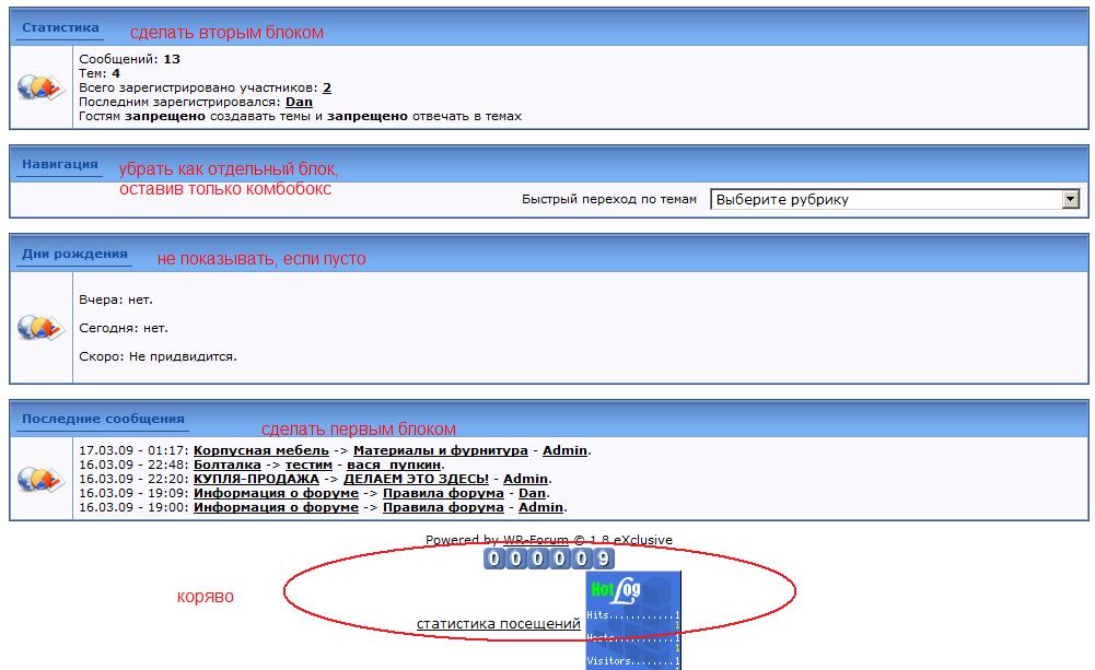 Тогда пойдем другим путем (IMG:style_emoticons/default/smile.gif) Примерная нагрузка форума в месяц и возможности хостинга? Есть куча бесплатных скриптов форумов. Советую посмотреть на следующие: