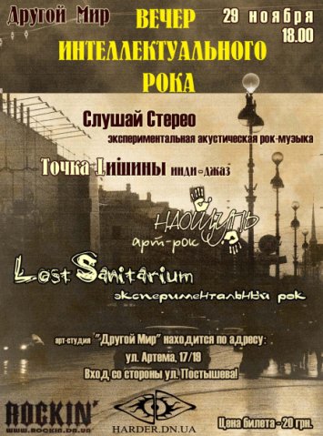 > [29.11.2009] Вечер интеллектуального рока @ Другой Мир, Слушай Стерео, Lost Sanitarium, Наощупь, Точка Тишины
