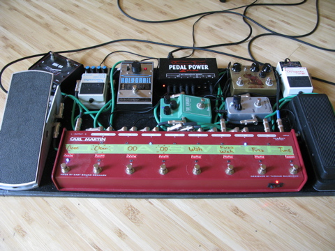 У многих есть достаточно внушительные педалборды и часто возникает проблема с переключением большого количества педалей. В одной песне, например, для чистого звука используется Хорус, Фазер, Дилей и надо резко переключиться на перегруз для которого используется Дисторшн и Тремоло. Я думаю достаточно проблематично одновременно выключить три педали и включить еще две. Для этого надо быть как минимум осьминогом, а ведь еще на какой-то ноге надо стоять))