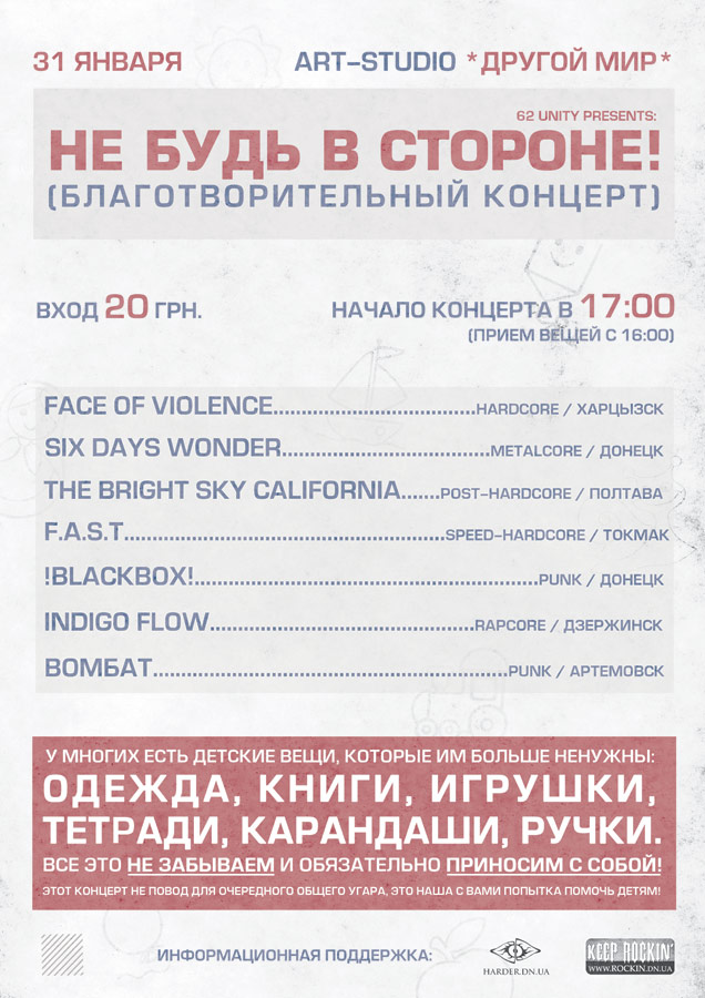 > 31.01.2010 Не будь в стороне, (Благотворительный концерт) @ Другой Мир
