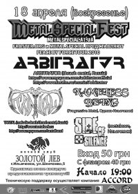 18 апреля (воскресенье) Клуб " Золотой Лев" г. Ильичёвск ул. Шевченко 5 Старт 19:00 Вход 50 грн. С флаером 40 грн. (IMG:img?url=http://cs913.vkontakte.ru/g16290736/a_2b801f67.jpg) FROSTER.ORG и METAL SPECIAL ПРЕДСТАВЛЯЮТ: PEACE BY FORCE TOUR 2010 ARBITRATOR (thrash metal, Russia) TANTAL (melodic death/thrash metal, Russia) NAMELESS BEING (progressive metal, Одесса-Ильичёвск) SIDE OF SILENCE ( Metal Core, Ильичёвск) |
