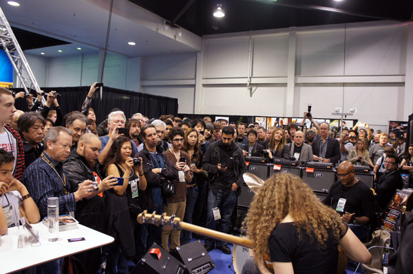 Настоящий фурор вызвало появление на стенде Тэл Вилкенфелд (Tal Wilkenfeld), басистки Джеффа Бека. Компанию ей составил известный барабанщик Стив Ферроне (Steve Ferrone), работавший с такими мировыми звёздами как The Bee Gees, Brian May, George Benson, Bryan Ferry, Eric Clapton,Peter Frampton, Whitney Houston, Pat Metheny, Marcus Miller, Jaco Pastorius. Джем в исполнении Тэл, которая является эндорсером EBS, и Стива приветствовала приличная толпа собравшихся у стенда зрителей. (IMG:img?url=http://allegro.com.ua/files/descr_img791.jpg) Сотрудники EBS отмечают, что на этой выставке продукция EBS вызвала наибольший интерес за всё время участия в подобных мероприятиях. ВИДЕО - ДЖЕМ Тэл Вилкенфелд и Стива Ферроне