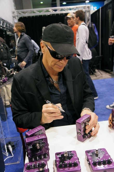 В зале гитарного и басового оборудования было больше всего посетителей, стойкий гул гитарных и басовых усилителей смешивался с голосами людей, разговаривать там, конечно же, было нельзя, зато можно было посмотреть, пощупать, проверить, или попросить ответственного сотрудника о демонстрации. На всех стендах цвела интереснейшая жизнь: на одних проходили автограф сессии и мастер классы от музыкантов (EBS, FENDER, VINTAGE), на других просматривалось празднование какого-нибудь юбилея компании(EBS), третьи просто демонстрировали продукцию, раздавали конфеты, медиаторы и просто хорошее настроение (FERNANDES,GIBSON, LAG). Что запомнилось очень ярко и привлекало, пожалуй, самое большее количество посетителей, это импровизированный racing туннель от гитарного бренда LAG, где есть все, что должно быть: рев мощного двигателя, воздушный поток в лицо и, конечно же, драйвовая рок-музыка, извлекаемая из отличных во всех отношениях электрогитар LAG серии ROXANE. Обстановка в точности передает ощущения гонщика. (IMG:img?url=http://allegro.com.ua/files/descr_img1244.jpg) Что касается новинок от ведущих брендов гитарного и басового оборудования, то тут конечно разгуляться было где. Начнем, пожалуй, с самого приятного. Шведский басовый бренд EBS празднует 25-летие с чем, его и поздравляем и под шумок выпустил отличную подписную педаль от виртуоза бас гитары Билли Шихана. EBS BILLY SHEEHAN SIGNATURE DRIVE. Это устройство разработано при непосредственном участии старика Билли. «Примочка» комбинирует компрессор, и драйв смешивает по желанию чистый и перегруженный сигнал. (IMG:img?url=http://allegro.com.ua/files/descr_img1245.JPG)
