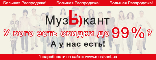(IMG:img?url=http://allegro.com.ua/files/descr_img1474.jpg) Уважаемые клиенты! Компания ALLEGRO MUSIC начинает беспрецедентное событие – грандиозную Распродажу! Только в нашем магазине «Музыкант» с 10 июля по 10 августа 2013 года у Вас появляется невероятная возможность приобрести музыкальные инструменты, оборудование и сопутствующие товары с огромными скидками до 99%*!
