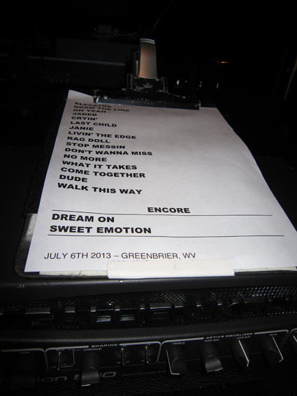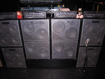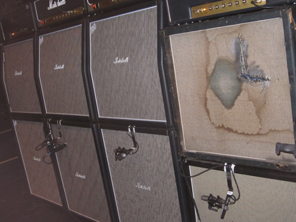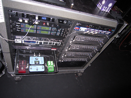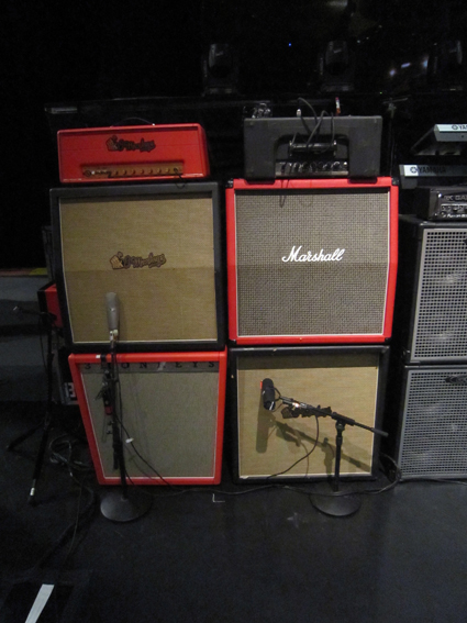 Вот посмотрите на армию кабинетов Тома Гамильтона. Именно они придают ТЕХ громовых звуков группе Aerosmith. (IMG:img?url=http://allegro.com.ua/files/descr_img1556.jpg) Уменьшим на мгновение зум и посмотрим на невероятный вид установок Aerosmith с небольшого расстояния… Стивен Тайлер убедился в полезности такого пространства во время шоу. (IMG:img?url=http://allegro.com.ua/files/descr_img1557.jpg) Возвращаясь в реальность, по другую сторону сцены, мы увидели коллекцию «Маршалов» Джо Перри, которые являются сердцем и душой звуков рок-н-ролла. Усилитель справа производит интересный эффект, когда в нем горит огонь во время соло Джо. Мы наслаждались каждой секундой этого действа! (IMG:img?url=http://allegro.com.ua/files/descr_img1558.jpg) А здесь – панель управления педалями Джо Перри! Это, случайно, не Soundblox 2 Dimension Reverb левом нижнем углу?