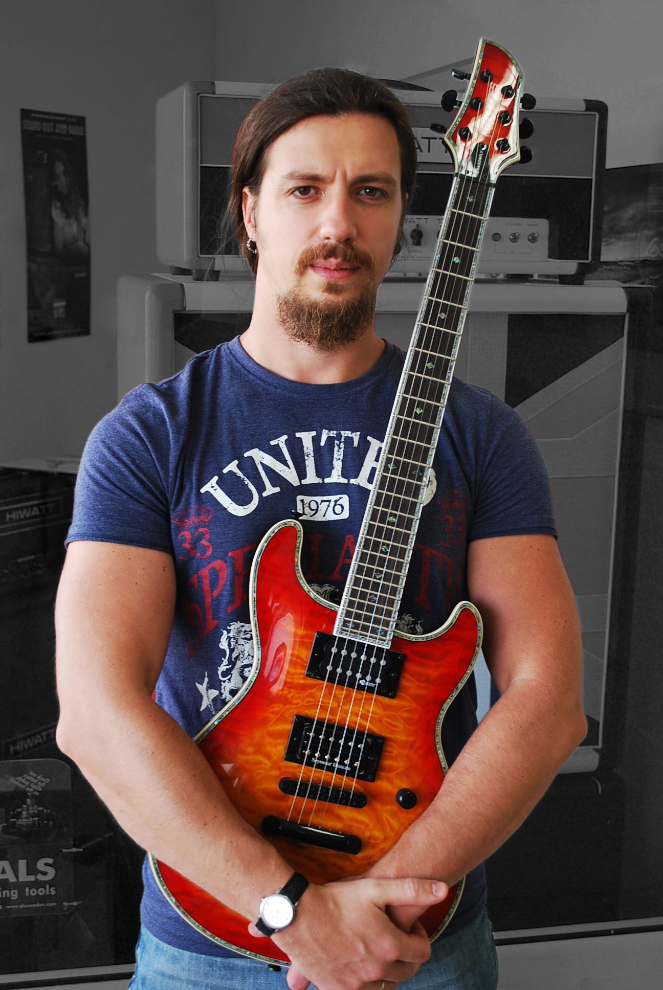 Теперь, собственно, о звуке. Чистый звук у Dragonfly Elite ожидаемо глубокий и «теплый». Верхнечастотного «звона» нет, но и глухим он не кажется. При использовании бриджевого хамбакера конечно появляется характерная резкость и атака, характерные для JB-4 - одного из самых популярных звукоснимателей на рынке. Если включить перегруз, картина становится еще более привлекательной. Нековый датчик, особенно с включенным режимом сустейнера и прибранной ручкой тембра, дает тот самый эффект «а-ля Сантана»: сустейн бесконечен и каждая взятая нота создает настоящую стену мягкого певучего звука. Очень располагает к игре медленных блюзов! А вот бриджевый датчик позволяет очень и очень многое. «Выхлоп» вполне приличный, так что играть можно даже агрессивный метал. Но и классический блюз прозвучит хорошо. Флажолеты «выстреливаются» без проблем, средние частоты позволяют комфортно чувствовать себя в живом миксе, а низ не «гундосит», как на многих гитарах аналогичной конструкции. С моей точки зрения, в «стоковом» варианте Dragonfly Elite создан более для блюза и классического рока. Хотя и в других стилях этот инструмент может проявить себя очень удачно. (IMG:img?url=http://allegro.com.ua/files/descr_img1611.jpg)
