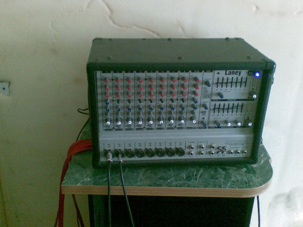 Потом началась настройка, на сцену вышла первая выступающая группа, и тогда мы просто ох….ели при каких условиях и на чём нам предстоит играть !!!! Перед тем, как начать описывать все детали того хаоса , хочу выразить благодарность местному звукорежиссёру - парень нам быстро объяснил, что обещанного аппарата не будет, нам предстоит играть через какой-то стрёмный, полуразваленный активный микшер, куда планировалось подключать всё !!!!!! кроме баса и вокала, (для баса был поставлен 30 ватный !!!! )))) !!!! ПИЗ...ЕЦ !!!!! комбоусилитель Laney, китайского производства, а вокал шёл в громадные колонки, которые стоят на сцене) мониторов не будет !!!!!!! Он сказал , что постарается сделать всё, что бы мы хоть как то прозвучали, за что ему большое спасибо, парень старался как мог и его вины в плохом звуке в тот день не было.