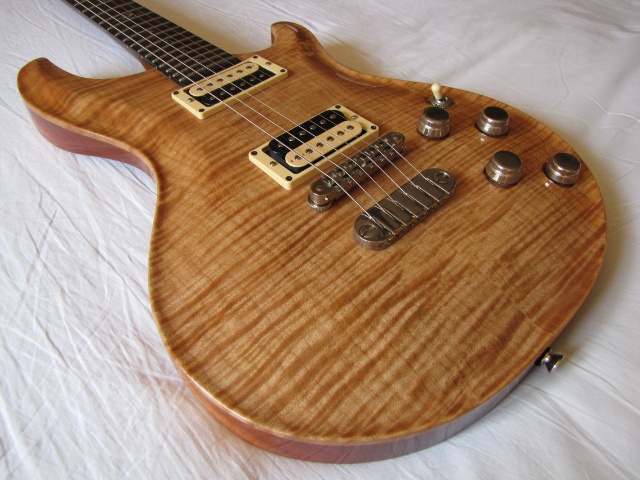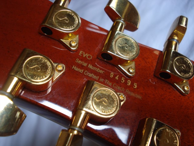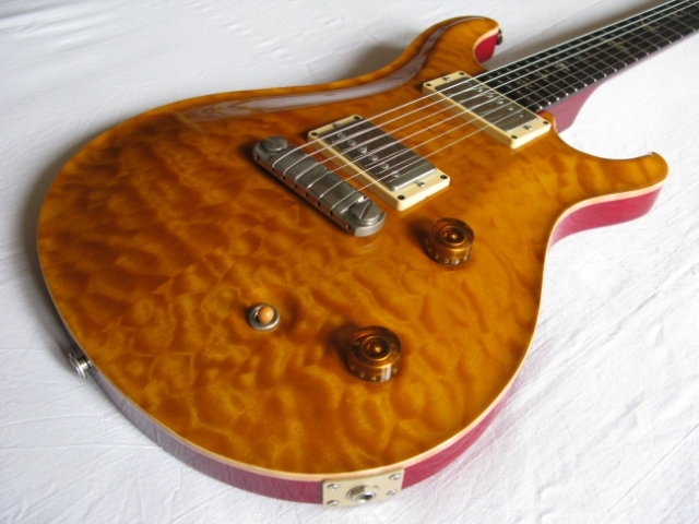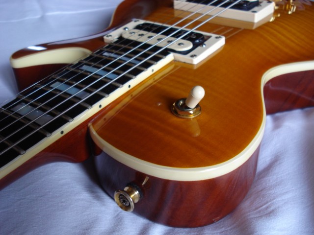 Качество изготовления действительно поражает.. Дерево накладки, лады и их закатка, усилие на ручках и переключателе, фурнитура, покраска, всё на высочайшем уровне (уровень не ниже Фрамусов и чисто по сборке далеко впереди серийных Гибсонов).. Отдельно несколько слов о покрытии.. На фотках в нете мне оно не очень понравилось, показалось дешевым.. Но живьем оно завораживает, очень качественное, дорогое и красиво переливающееся на плавных изгибах..