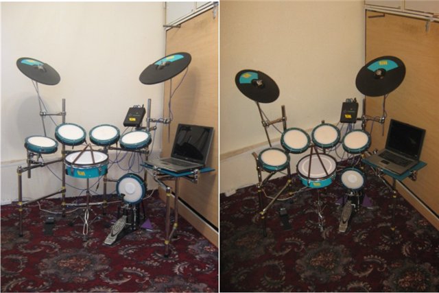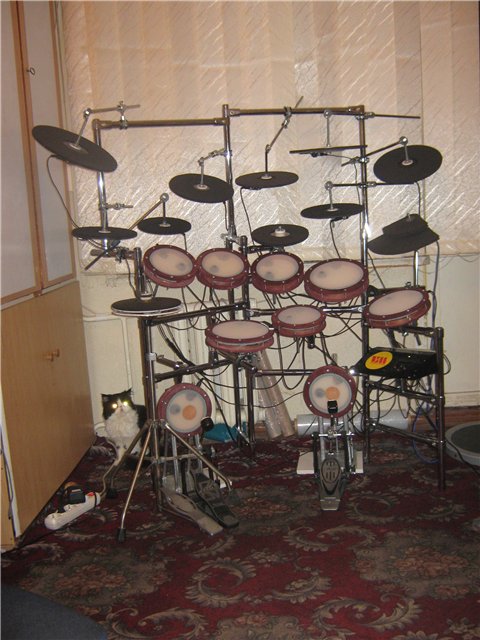 В комплекте-модуль MegaDrum-высококачественный 32-х входовый миди конвертер, работает в связке с компьютером или хорошим ноутбуком, согласование с компьютером возможно в двух вариантах-по USB и MIDI-интрфейсам. Стандартный комплект включает в себя малый барабан(2 зоны),2 альта, флур том-том,басс-барабан(педаль под б.б. в комплект не входит),3 тарелки(2 тарелки крэш(одно-,двухзонные), тарелка райд(двух-, трехзонная), тарелка хай-хэта с педалью. На фото-образцы установок. Стоимость зависит от комплектации, материала рамы, материала рабочей поверхности пэдов барабанов (резина, сетка).Возможно изготовление миди-конвертера в отдельности. Переделаю обычную акустическую установку в электронную ( на фото-Maxtone, вполне подходит для домашних занятий, звучит весьма тихо за счёт нейлоновых сеток). Гарантия на электронную часть любой из установок -1 год + послегарантийное обслуживание.