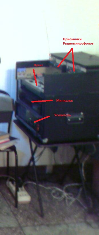Молодец! Я сам однажды сделал себе подобную конструкцию. И дёшево, и практично. Часто приходилось перевозить аппаратуру с места на место, а каждый раз включать и выключать шнуры просто задрало. Правда, я использовал уже готовый корпус от колонок "Сигма". Где-то отпилил, где-то приклеил. Но, принцип тот -же. Всё было закоммутировано внутри. Мне оставалось подключить этот "ящик" к резетке и колонкам, вытянуть шнур на клавишу и ноут. Вся процедура занимала ровно 3 минуты. И я не боялся ни перевозок, ни машин, не тряски. Всё влазило в любой багажник легковушки. Вот, нашёл фотку: (IMG:img?url=http://img.pixs.ru/storage/4/3/1/FOTO00042j_8758132_865431.jpg)