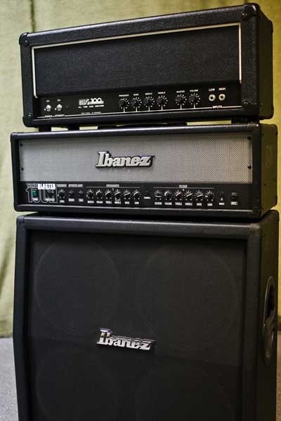 • ламповая голова Sovtek MIG-100, • транзисторная голова Ibanez Toneblaster 100H, • кабинет Ibanez 412, • комбик Crate GX-212.