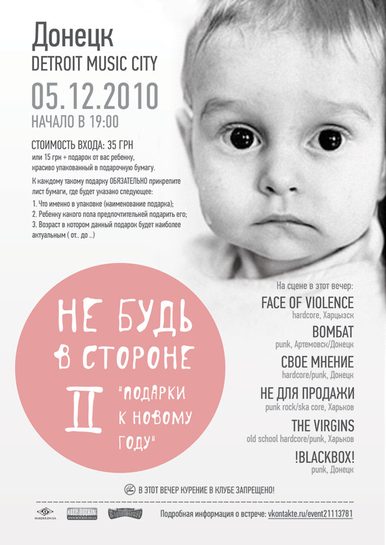 Почему-то все кто хотели - поняли, что это благотворительный концерт со сбором подарков для детей, и даже пришли и принесли много подарков (в том числе и люди далёкие от организаторов как по жизненным ориентирам, так и по музыкальным предпочтениям). Ну а кому "ужаснулся - положи, заверни и т. д. причём за мои же деньги" тому туда и не надо было попадать.