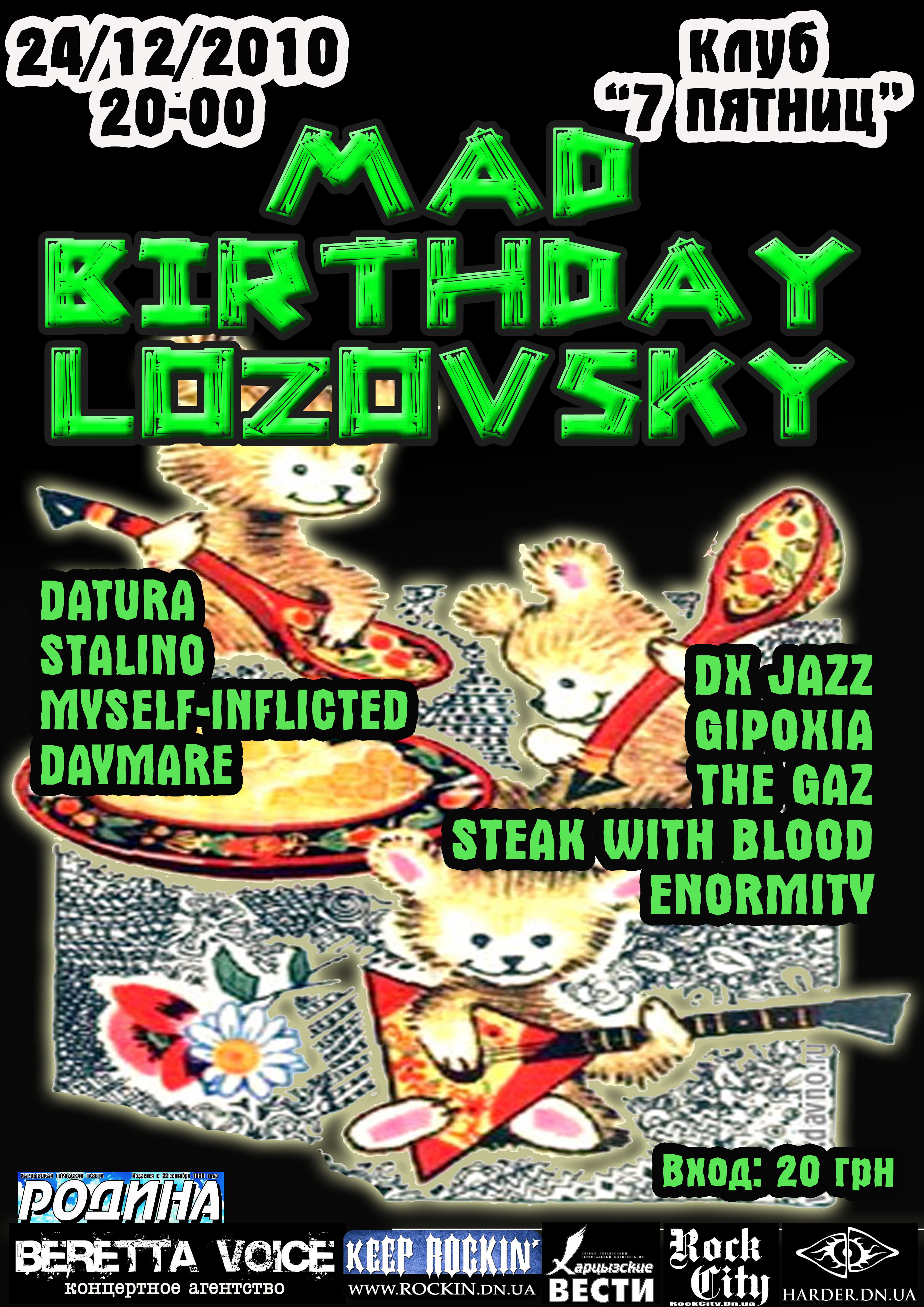 Соглашусь по поводу афиши в клубе "7 пятниц" - ужас. Да ещё и на латинице. Полный отстой. Ту да же идёт афиша "Другой мир" 16 июля. Какой-то галлюциногенный бред на фоне полосатых обоев...