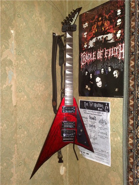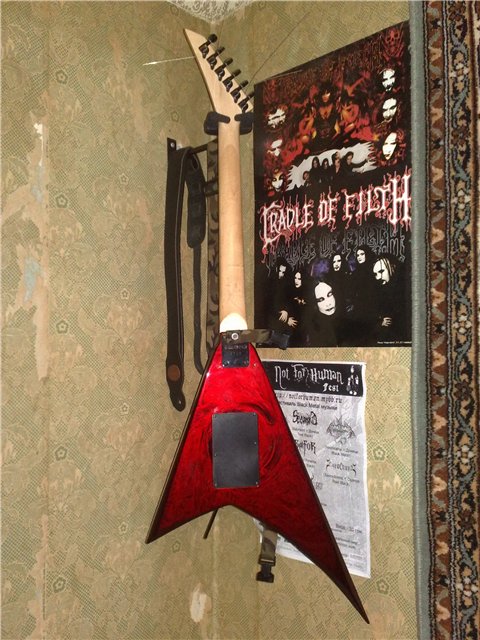 Корпус - ольха. Гриф на болтах, клен. Накладка - палисандр. 22 лада джамбо. Мензура 25.5` Звукосниматели - Bridge: Seymour Duncan® JB™ TB4 был заменен на старый американский Jackson, что дало больше зубастости гитаре, Neck: Seymour Duncan® Jazz™ SH2N Бридж - Floyd Rose® Licensed Jackson® Фурнитура - черная. Год выпуска-2009 Серийный номер-9787325 Куплена новой в США в конце 2010 годау оффициального диллера, играл на ней совсем мало, никуда не выносилась из дому, почти всю жизнь провисела на стенке. Состояние - Идеальное!!! Кто знает что такое V-образные гитары поймет, насколько хорошее состояние, если даже на кончиках рогов нет ни царапины))) Насчет флойда - состояние ножей просто шикарное, строй держит очень хорошо! Звук мясной, лады в хорошем состоянии, никакого звона и дребезга. Струны Music Man 10-46, еще играть и играть. В комплекте камуфляжный ремень с клиплоками Dimarsio. Весло реально звучащее и потрясающе красивое, но... стрел у меня две, хочу Kelly. Цена - 850$ Гитара в Донецке. (IMG:img?url=http://s53.radikal.ru/i139/1102/a2/c37299d3bbf4.jpg) (IMG:img?url=http://i012.radikal.ru/1102/01/bbbe4eb1cbb8.jpg) Контакты в подписи под сообщением. Сообщение отредактировал 14Малой88 - 16.2.2011, 0:38 |