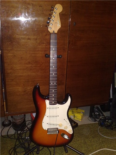 Гитара 1996 года выпуска, состояние ладов и механики отличное, есть пара маленьких сколов лака и трещинка пластиковой панельки, утеряна задняя крышка, на звук не влияет) по словам прежнего хозяина ничего не менялось. на седлах и колках выбито Fender. По звуку-очень универсальный инструмент, брутал дэз конечно не потянет, но от блюза до хэви-на ура! клин-что говорить, кто знает-поймет) Цена сего чуда 550 баксов.