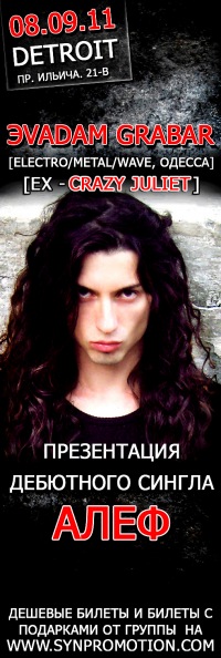 DS PROMOTION GROUP и концертное агентство SYN Promotion представляют концерт одесского исполнителя Эvadam Grabar (ex-CrazY JulieT) в рамках презентации сингла ' Алеф ' 2011.