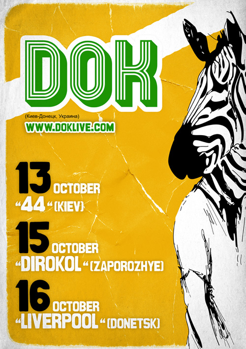 DOK - программа экстренной помощи жертвам весенней депрессии, жизненной суеты и мировой скорби. Авторитетное издание Fuzz признало DOK одной из самых впечатляющих новых групп, поместив их дебютную пластинку в топ-20 лучших за 2009 год. Нарушая все правила и стереотипы, группа живет на два города и ведет активную гастрольную деятельность на территории СНГ. Живые концерты трио поражают своей дерзкой и оголтелой энергией. Это нужно услышать!