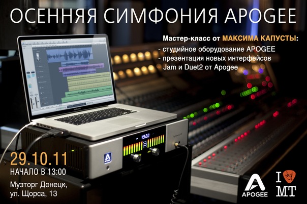 http://vkontakte.ru/event31268922МузТорг представляет семинар посвященный новинкам компании Apogee.