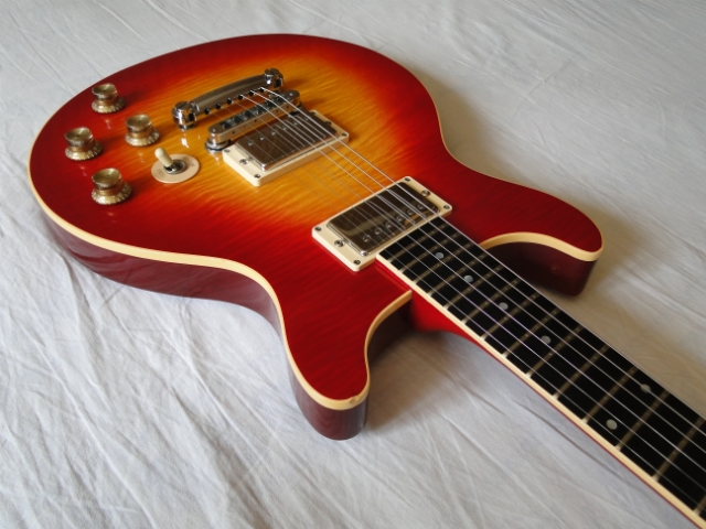 Крайне редкий винтажный 30ти летний Гибсон ДаблКат в отличном играбельном состоянии, который звучит много лучше современных Гибсоновских ДаблКатов, по цене последних.. Этих гитар было выпущено всего 50 штук.. Эта - 18я (на голове грифа выбито "018").. Будь она All Original наверное выставлял бы за 3к.. Думаю, желающие среди коллекционеров нашлись бы.. А так - 2300 для старта.. Внесенные изменения - ниже по тексту.. Изначально они выглядели вот так (с датчиками P90 на борту): http://img360.imageshack.us/img360/456/382330oe5.jpg Здесь шло обсуждение того, что же это за модель (и было много заблуждений, что не удивительно ввиду ее чрезвычайной редкости): http://www.mylespaul.com/forums/gibson-les...nfo-please.html Ответ владельца канадского магазина La Tosca Musique: Цитата Hi there ,I'm Guy Abrassart owner of La Tosca Musique store .I made the design et ordered 50 guitars like this back in 1980.A third were cherry sunburst ,another brown sunburst et the last third red wine.Hand made in kalamazoo.selling for $1200,00 in 1980,a lot of money back then.I sold them all myself in six months.There is a few in UK (one in the Paul Mccartney band)a few in Usa and the most is here in Montreal.And yes ...it is was called a Les Paul Double cutaway.It is interesting to know that it was the first time Gibson made a custom batch for a store.They did because I suggest it.For your pleasure I sent a picture of the one I kept. Maybe I go in your country one day ,I'll drop and say hello. Have a good day Guy. Если коротко, то в 1980м году к юбилею канадского магазина La Tosca Musique по их же заказу Гибсон выпустил 50 специально для этого спроектированных гитар.. Треть гитар была Cherry Sunburst (как моя), остальные - Brown Sunburst, последнии три - Wine Red.. Изготовлены вручную в Каламазу.. Назывались - Les Paul Double Cutaway.. В 1980м году все 50 штук за полгода продали по 1200 долларов (добавлю от себя, что ЛП Кастом в то время стоил около 1000 долларов).. Несколько в Британии, несколько в США, большинство - в Канаде.. От себя добавлю: Из всех моделей Гибсон гитара больше всего напоминает Gibson Spirit (Spirit выпускались с 82го года, поэтому можно сказать, что DoubleCut La Tosca - это прототип модели Spirit).. Но с явными отличиями.. * Spirit была относительно бюджетной моделью.. Поэтому лого "Gibson" на пере наносилось краской.. В то время как на Double Cut La Tosca (в дальнейшем - "сабж") - врезанный перламутровый логотип.. * Spirit имел три крутилки, на сабже - 4.) * на Spirit'е была накладка из палисандра без окантовки, на сабже - эбони с окантовкой.. * на Spirit'ах стоял оборачиваемый бридж в большинстве случаев, на сабже - ТОМ+стоптейл.. Также гитара отличается характерными для Гибсонов конца 70х - начала 80х моментами - трехкусковый криф из клена и волюта (наплыв на хэдстокхиле).. Единственное, на чем сэкономили в этой модели - это топ.. Его нет.. Сверху деки из махогани находится шпон волнистого клена толщиной около 1мм.. Возможно это было вызвано тем, что партию пытались изготовить с минимальными расходами по технологии.. Spirit'а (у него был полноценный кленовый топ) тогда еще не было, поэтому могли взять форму модели Junior, а там как раз кленового топа не было.. Но это мои догадки.. История конкретно моей гитары.. Думаю, если бы гитара досталась мне в состоянии All Original, то она бы мне не досталась (было бы вероятно дороговато из-за коллекционеров).. Гитара же досталась мне с врезанными хамбакерами (напомню, в оригинале были P90).. Видимо, тому, кто это сделал с ней, не приходила в голову возможная коллекционная ценность инструмента.. Также человек был видимо полный дилетант, т.к. переделка была сделана ужасно.. Стоит напомнить, что P90 на оригинале стояли без рамок, а также эти датчики длиннее, чем хамбакеры.. Поэтому датчики можно сказать держались просто в дереве, а болты рамок болтались в 