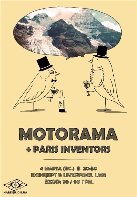 4 марта, воскресенье Место - Liverpool Live Music Bar Начало - 20:30 Вход - 70 грн. предпродажа; 90 грн. в день концерта. ------------------ Motorama (Ростов-на-Дону, РФ) http://vk.com/wearemotorama http://wearemotorama.com