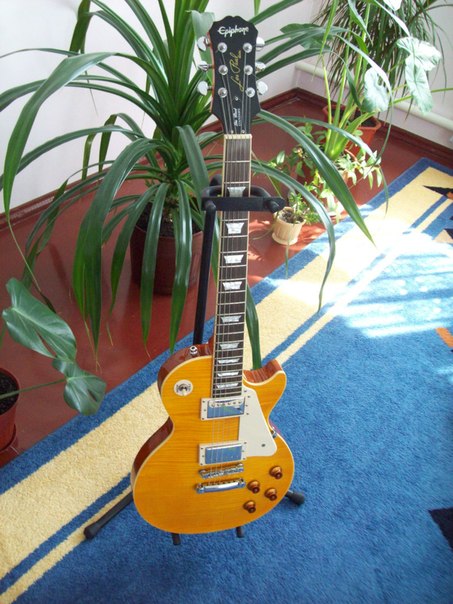 Epiphone - Les Paul Standard. Гитара новая, игралась несколько раз в домашних условиях. Отлично строит. Звук плотный, "жирный" с присущей Лес Полу богатой серединой. В комплект входит: твердый фирменный кейс, ремень, шнур, ключ для отстройки анкера. 4000грн.