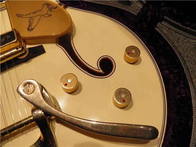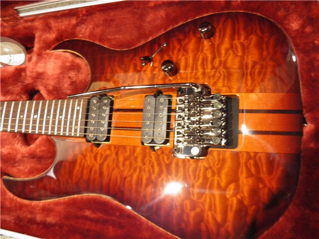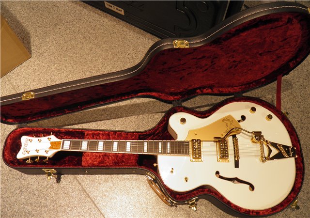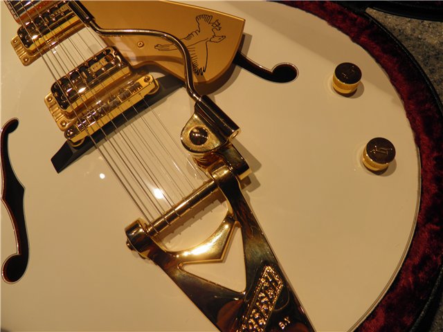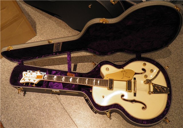 Все гитары покупались в киевском Музторге. Покупались для коллекции - состояние у всех гитар складское магазинное. "Нулевое". Неигранное. 1. ПРОДАН Эта гитара - релик, т.е. состарена так, чтобы выглядеть как инструмент производства "тех" лет. (лет 100 назад (IMG:style_emoticons/default/smile.gif) ) Потрескавшийся лак, поржавевшие звукосниматели и т.п. Регуляторы инкрустированы рубинами. В комплекте идет винтажный ремень типа "ручка от дамской сумочки". Описание взято с http://www.muztorg.ru/cat/details/A003014/#description Описание GRETSCH GUITARS USA CUSTOM SHOP G6136CST WHITE FALCON: Название модели: CUSTOM SHOP G6136CST WHITE FALCON Категория: полуакустическая гитара Тип деки: Single Cutaway Мензура: 25.5" (648 мм) Верхняя дека: арочный клен Обечайка и задняя дека: клен, 17" ширина, 2.75" глубина Гриф: 3 куска клена Звукосниматели: 2 хамбакера Filter'TronTM Переключение звукоснимателей: 3-позиционный переключатель «Toggle» Управление: громкость 1. (нековый датчик), громкость 2. (бриджевый датчик), мастер громкость, 3-позиционный переключатель тембра Ширина нулевого порожка: 1-11/16" (43 мм) Накладка: черное дерево, радиус 12" (305 мм) Бридж: Adjusto-MaticTM Держатель струн: тремоло Gretsch Bigsby® B6GW Фурнитура: позолота Кейс Количество лады: 22 Колки: Grover® ImperialTM Страна-производитель: США Насколько мне известно, за все время на территорию СНГ завозилось официально только две таких гитары.Это одна из двух. Покупалась за более чем $30.000. Цена продажи $16.000. (IMG:img?url=http://s017.radikal.ru/i406/1210/f9/2f85da49ccf7.jpg) (IMG:img?url=http://s017.radikal.ru/i418/1210/ad/ecc78e8be57d.jpg) http://www.gretschguitars.com/features/customshop - посмотрите внизу. http://www.youtube.com/watch?v=_z5Y_Y9betE 2. ПРОДАН Инструмент серийный. Описание взято с http://www.muztorg.ru/cat/details/43414/ Описание GRETSCH GUITARS G7593 WHITE FALCON (WITH BIGSBY TREMOLO) WHITE : Название модели: G7593, White FalconTM I Серия: Professional Collection Категория: полуакустическая гитара Тип деки: Single Cutaway Мензура: 25.5" (648 мм) Верхняя дека: арочный клен Обечайка и задняя дека: клен, 17" ширина, 2.75" глубина Гриф: 3 куска клена Звукосниматели: 2 хамбакера Filter'TronTM Переключение звукоснимателей: 3-позиционный переключатель «Toggle» Управление: громкость 1. (нековый датчик), громкость 2. (бриджевый датчик), мастер громкость, 3-позиционный переключатель тембра Ширина нулевого порожка: 1-11/16" (43 мм) Накладка: черное дерево, радиус 12" (305 мм) Бридж: Adjusto-MaticTM Держатель струн: тремоло Gretsch Bigsby® B6GW Фурнитура: позолота Кейс Количество лады: 22 Колки: Grover® ImperialTM Страна-производитель: ЯПОНИЯ Покупалась за более чем $4000. Цена продажи [s]$2500 (IMG:img?url=http://s002.radikal.ru/i199/1210/30/8dd2a362893c.jpg) (IMG:img?url=http://i065.radikal.ru/1210/74/22a63827b7a3.jpg) 3. ПРОДАН Описание: Body material: Mahogany with AAA Quilted Maple top Neck joint: Neck-thru Bridge: Edge Zero tremolo with ZPS3 Hardware color: Cosmo Black Neck type: Wizard Prestige Neck material: 5-Piece Maple/Wenge Fingerboard: Rosewood Inlays: Small Abalone dots Frets: 24 / Jumbo PU Config: HH Neck PU: DiMarzio IBZ RG Bridge PU: DiMarzio IBZ RG Controls: 1 Volume / 1 Tone / 5-Way lever Покупалась за $3000. Продает за $2000. (IMG:img?url=http://s58.radikal.ru/i161/1210/78/1097f0ea8a1a.jpg) (IMG:img?url=http://s61.radikal.ru/i172/1210/2c/17a5c17de2c5.jpg) 4. ПРОДАН Тынку (тот, кто ее заказывал) пишет: "Ibanez Japan RG Russian Gun 2008 Начав производить руссификацию, было очень трудно оставиться. И поэтому следующей моделью была выбрана Ibanez RG. За основу была выбрана самая навороченная модель со сквозным грифом. Датчики Seymour, более надеждый переключатель вместо ручки тембра, «лесполовские» сочетания древесины и тот самый «гибсоновский» цвет – рецепт был прост. Новую модель решено было назвать Russian Gun (на голове грифа), что перекликалось с абревиатурой RG. Было выпущено 15 таких инструментов." Впервые компанией Ibanez сделана гитара специально для рынка Рос