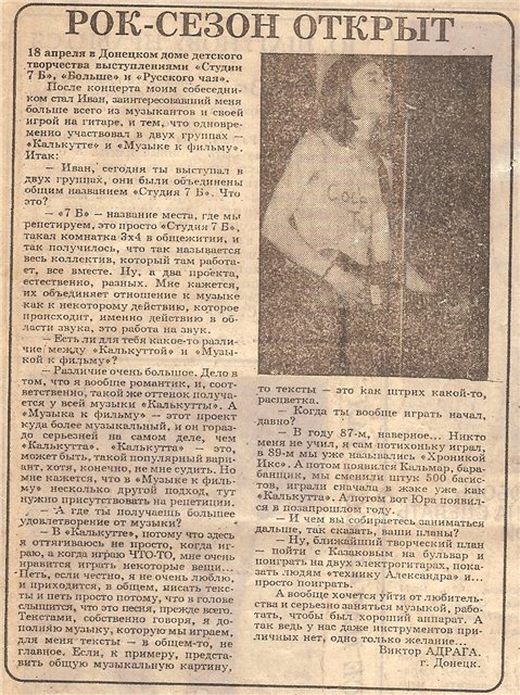 1985 - Квартирник в Донецке 1988 - Концерт на фестивале Донецкого рок клуба (ДК им. Куйбышева) 1989 - Демо (ДК им. Ленина) Следите за анонсом. Сообщение отредактировал zaton - 12.12.2012, 19:14 |