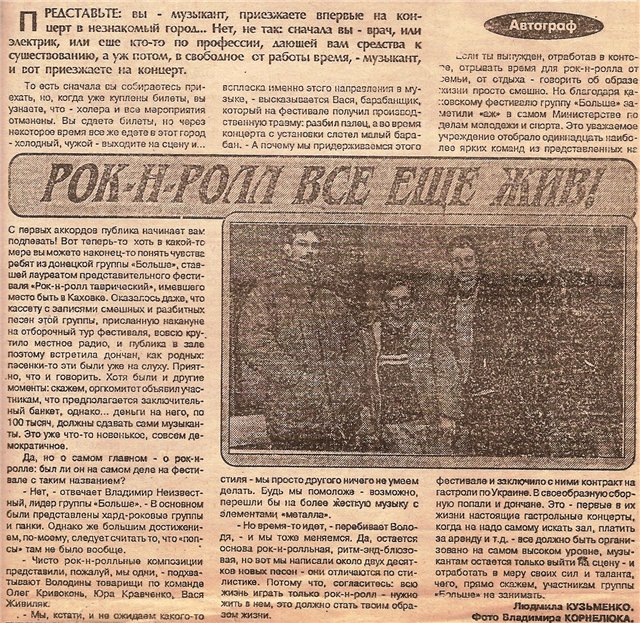 (IMG:img?url=http://cs313728.vk.me/v313728086/1bc3/Qdu7fj_lkQs.jpg) И ещё одна отличная новость, в конце месяца планирую закончить работу по оцифровке раритетных записей с бобины, а именно: Концерт на фестивале Донецкого рок клуба (1987 год !!! ) и Демо записи (1989 год), следите за новостями, Немного фото с легендарного концерта в ДК Куйбышева в Донецке: (IMG:img?url=http://cs152.vk.me/v152672/5d/VkDGTPh7iMw.jpg) (IMG:img?url=http://cs152.vk.me/v152672/5a/WQJfyVYCQOk.jpg) (IMG:img?url=http://cs152.vk.me/v152672/57/AS9_X4dbSAs.jpg) (IMG:img?url=http://cs152.vk.me/v152672/54/uX-3aEeHi4k.jpg) Сообщение отредактировал zaton - 20.6.2013, 19:55 |