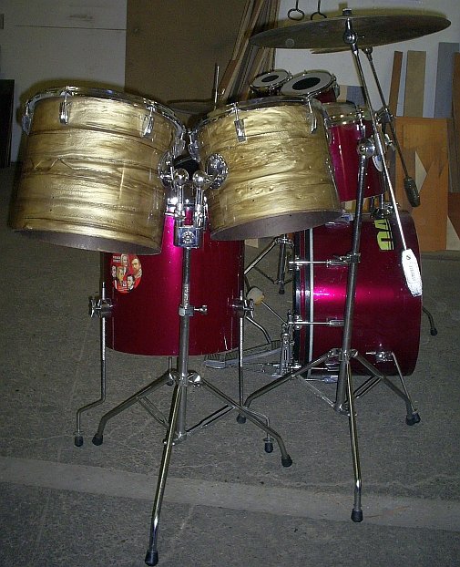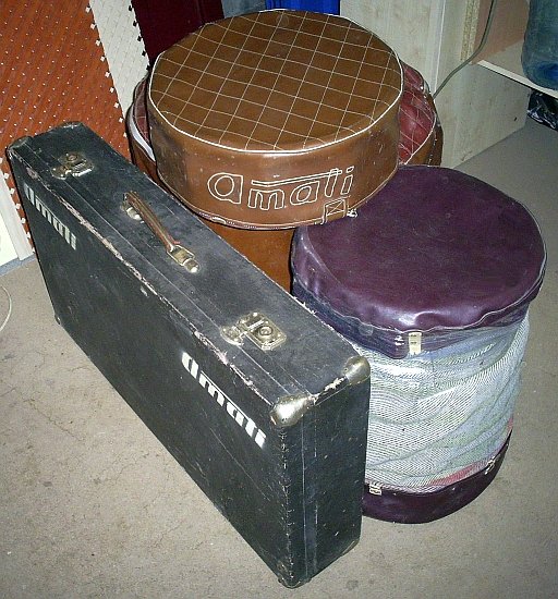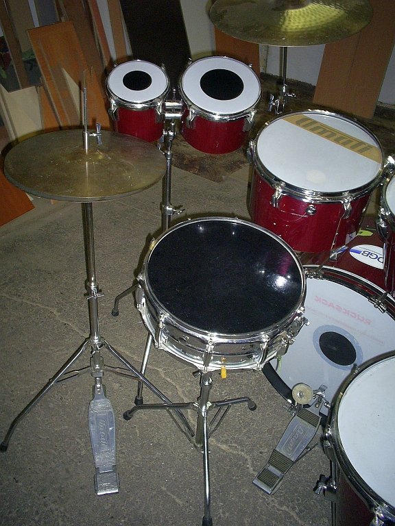 Продам ударную установку Amati (Чехословакия). Хорошее состояние. Полный комплект: бочка, рабочий, 2 альта, 2 бонго, том, 2 тарелки, хет, педаль для бочки, стойки для тарелок + в нагрузку дополнительные 2 альта Tacton (ГДР), чехлы на барабаны и кейс.