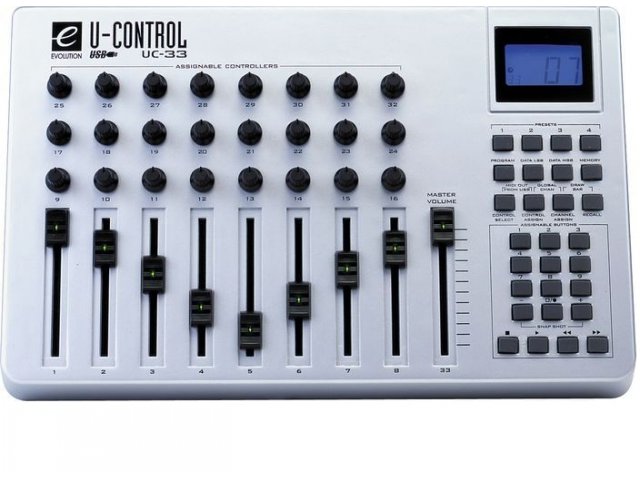 MIDI контроллер (24 поворотных контроллера, 9 полноразмерных фейдеров, MIDI/USB), поддержка SYSEX дампа, мьютирования, библиотеки программ) M-Audio Evolution UC-33e - USB миди-контроллер с возможностью управления 47 различными параметрами в реальном времени для студийного и концертного использования. Основные характеристики M-Audio Evolution UC-33e: - 9 полностью назначаемых фейдеров (60 мм) со световыми индикаторами имеющих возможность работы в реверсивном режиме - 24 назначаемых вращаемых регулятора имеются 33 ячейки энергонезависимой памяти, включая 4 ячейки с отдельными кнопками - каждая для мгновенного вызова предустановленных параметров - Новая уникальная функция настройки регуляторов controller mute - Предустановленные значения контроллеров для работы с наиболее популярными приложениями - Многофункциональный LCD-дисплей с голубой подсветкой - Компактный настольный дизайн, резиновые ножки - Питание осуществляется по USB. Есть разъём для сетевого адаптера (9-12V плюс в центре, используется для работы без компьютера, приобретается дополнительно) - Разъёмы: MIDI Out, MIDI In, USB, а также переключатель Power On/Off http://hitonline.ua/products/midi-klaviatu...ion-uc-33e.html состояние – хорошее отправлю по Украине (оплата при получении) возможен обмен (предлагайте варианты) Цена - 1750грн ICQ: 361шесть17шесть73 |