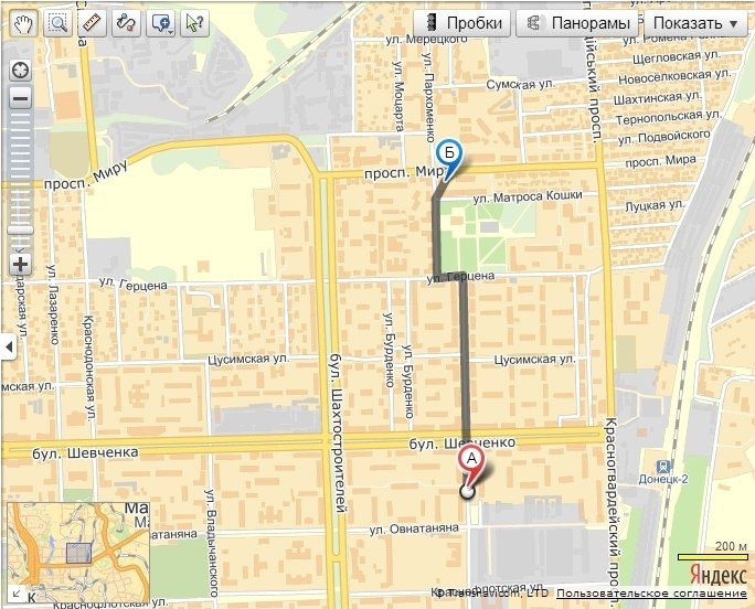 С ул. Горького можно добраться троллейбусом №4, ехать до конечной остановки "Проспект Мира", затем пешком 200 метров в сторону Красногвардейского проспекта. Так же троллейбусом №7, выходить на остановке "Улица Шахтинская", затем нужно пройти пешком 300 метров в сторону бульвара Шахтостроителей.