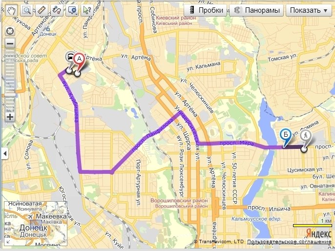 С АС Крытый рынок можно добраться маршрутным такси №24, через ул. Челюскинцев, пр-т Ильича, пр-т Красногвардейский, выходить на остановке "Улица Шахтинская", затем пройти пешком 300 метров в сторону бульвара Шахтостроителей.