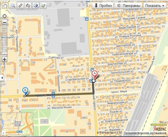 С ТЦ "Амстор" ул. Соколиная, можно добраться маршрутным такси или автобусом №100 до той же остановки "Фамильный банк", через ул. Куйбышева, пл. Бакинских комиссаров, пр-т Панфилова, ул. Университетская, пр-т Мира. Дорога не больше 30 минут занимает с конечной, Там же можно сесть на маршрут №23 и доехать до остановки "Улица Шахтинская", затем пройти пешком 300 метров в сторону бульвара Шахтостроителей и вы на месте, разница в том, что маршрут №23 едет по бульвару Шевченко, а №100 по проспекту Мира.