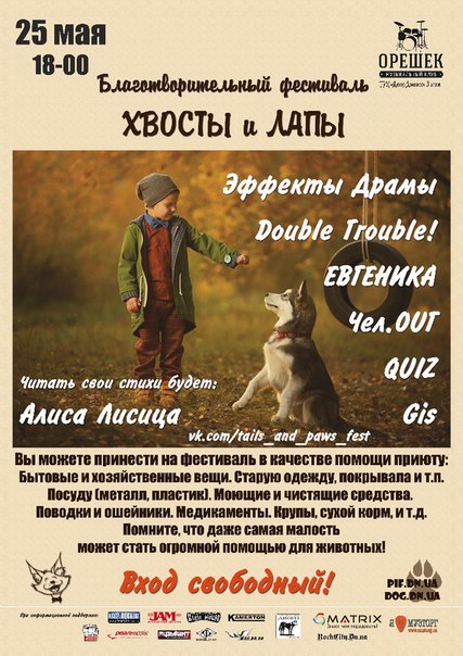 В поддержку приюта для бездомных животных "ПИФ" и КП "Животные в городе"25 мая 2013 будет проведен второй фестиваль "Хвосты и Лапы"