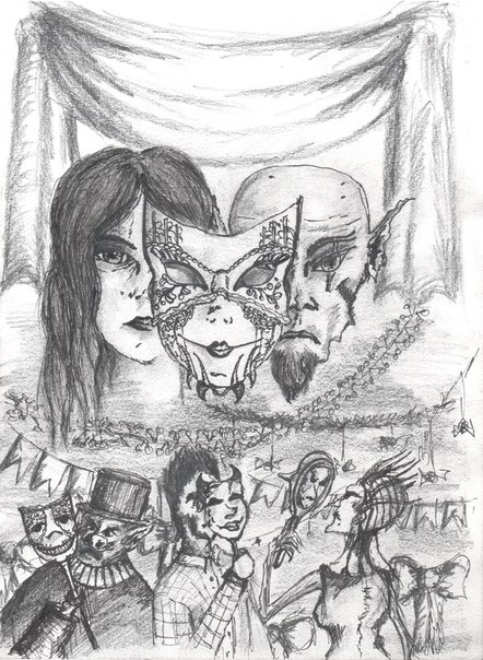 Cricket Secret (Таинство Сверчка) Идея композиции: Руслан Чертенков Запись, сведение, мастеринг: serge-kovtun prodaction Аранжировка: Руслан Чертенков, Сергей Ковтун Автор картины: Зомба Редактирование рассказа: Алексей Евсеев Время снова капризничало. Снаружи стемнело, и в комнате было мрачно. Он потеребил золотую цепочку часов, протёр исцарапанный корпус и бережно положил репетир в левый карман фрака. На столике у кровати стояла чашка с остывшим кофе, рядом – пачка сигарет. Он взял со столика спички и зажёг небольшой огарок свечи, намертво прилипший к столу. Комната наполнилась тусклым коричнево-жёлтым светом, пятнами стали видны стены, из темноты в центре комнаты проявился большой треугольный стол. Он отпил немного противно-холодного кофе. Жалкая попытка взбодриться. Рука потянулась к сигаретам и спичкам. Пламя свечи колыхнулось, поддаваясь движению прелого воздуха – тени на миг дернулись волнами. Комната медленно заполнялась сигаретным дымом. Наконец, сознание оказалось в долгожданном пробуждении, но мыслям всё равно не удавалось вернуться в прошлый вечер. Всё было там же, всё было по-прежнему: та же комната, тот же он, а потом? Потом пустота и неизвестность. Ещё какой-то миг он мысленно пытался открыть дверь во вчера, но оставил эту тщетную затею. Всё как обычно – всего лишь часть регулярного ритуала пробуждения, как надежда хоть на какие-то скудные воспоминания и обрывки событий, удержавшихся в отсутствующем сознании. Всё как обычно. Или нет? Как понять, что обычно, а что нет, если нет ничего, кроме того, что есть сейчас? Есть только он и комната, уже запертая дверь в «давно» и ещё неоткрытая в «нескоро». Он привычно отправил окурок догорать в пепельницу рядом со свечой. Встал с кровати, нехотя побрёл к умывальнику в противоположном углу. Холодная вода окончательно привела сознание в бодрость. Время капризничало. Он осмотрел комнату, как будто впервые её увидел. Под землёй нет окон. Он подошел к кровати, взял со столика сигареты и спички, повернулся к треугольному столу. В центре него стояла чаша с чем-то непонятным. Яркая, переливающаяся из одного оттенка в другой жидкость. Он закурил, подошёл к треугольному столу, зажёг две свечи, стоявшие по краям. В комнате стало светло, тусклый жёлто-коричневый свет превратился в яркий и тёплый. Сжав сигарету между указательным и средним пальцами правой руки, он наклонился над чашей, готовый погрузиться в водоворот красок. Вчера и завтра в их власти. Он вытянул руки перед собой, расположив их над сосудом. Всё в комнате замерло, лишь цепочка карманных часов, звякнув, выпала из кармана и свесилась над столом. Ссылки на прослушивание: Вконтаке Rocklab Masquerade (Маскарад) Идея композиции: Руслан Чертенков Запись, сведение, мастеринг: serge-kovtun prodaction Аранжировка: Руслан Чертенков, Сергей Ковтун Автор картины: Зомба В зале медленно плавают клубни дыма, покрывая плечи каждого из гостей. Зал наполнен звоном бокалов, смехом, звуками разливающихся напитков. По законам человеческой сущности каждый ищет в толпе знакомых людей и пытается присоединиться к их обществу. От каждого такого скопления знакомых воняет восхищением и интересом, любопытством и другими извращёнными состояниями человеческого «Я». Тут продумана каждая эмоция, отточен любой ответ и выражение лица. Иногда, кажется, что они видят друг друга насквозь и просто иг