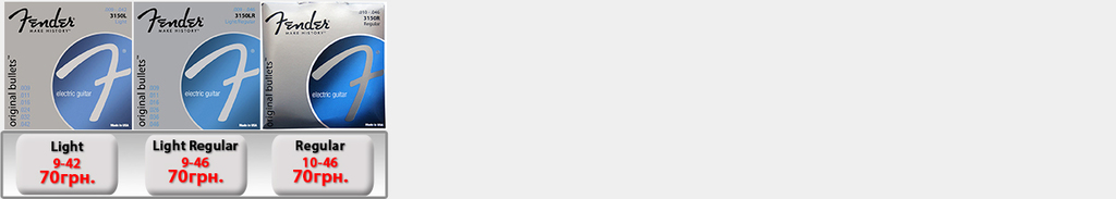 (IMG:img?url=http://s15.postimg.org/5lrmhn8rf/fender_bullets.jpg) Струны Fender 3150L Light 9-42 - 70грн. Струны Fender 3150LR Light Regular 9-46 - 70грн. Струны Fender 3150R Regular 10-46 - 70грн. |