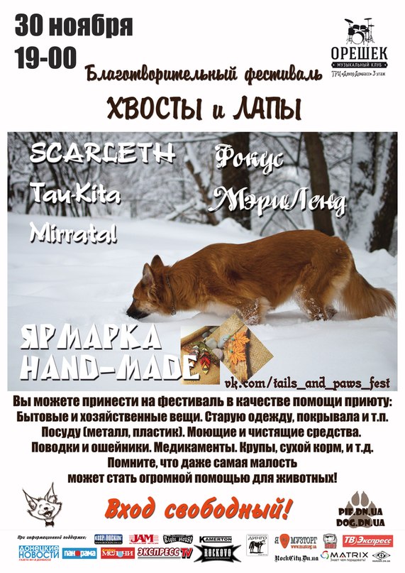 > [30.11.2013, 19:00] Благотворительный рок-фестиваль "Хвосты и Лапы", г. Донецк, "ОРЕШЕК"