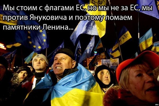 В общем, больше всего повеселили фразы типа "мы не за Европу - мы за свое достоинство!". Сразу вспомнилось, как говорили наивные оранжисты после того, как их наебали в 2004м:" Мы голосовали не за какую-то определенную политсилу, а за право голосовать свободно!". Ага-ага...