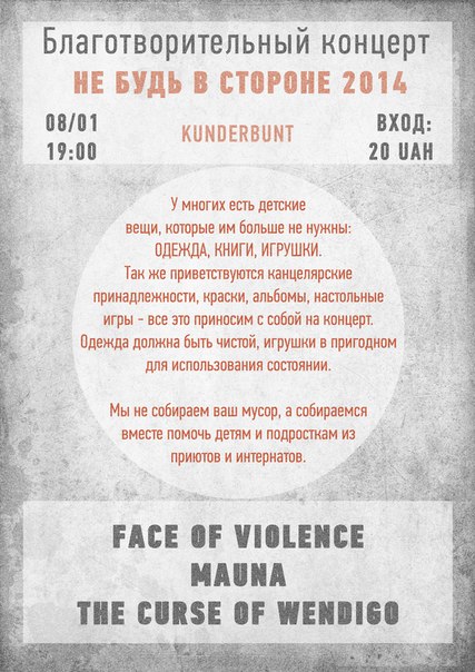 > [8.1.2014, 19:00] Благотворительный концерт НЕ БУДЬ В СТОРОНЕ 2014, г. Донецк, Kunderbunt