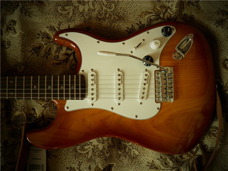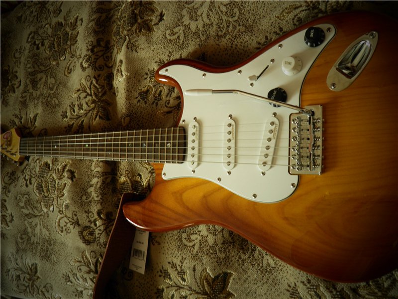 Хоть она и идет как "Alder Strat", я почему-то вижу рисунок ясеня, и звучит она более по-ясеневому - больше плотности и жира, чем в ольхе (хотя за эти деньги особой разницы нет, конечно-же). Сравнивал ее с в два раза более дорогими скваерами, которые она делала (по моему мнению). Поэтому и купил, т.к. очень хотел страт. Мною гитара была заэкранирована (+300гвн работа), в подарок отдам новый ремень Fender 60 юбилерсари из кожзама (+150гвн). Одни только датчики вилкинсон, которые на ней стоят, на йебайе стоят 80-100уев. В общем, гитара сугубо стоит дороже, чем за нее просют. Наклейку ТАМА могу отклеить, но наклеил ее т.к. ТАМА намного благороднее, чем беззвестный Woodstock (IMG:style_emoticons/default/smile.gif) . Также гриф имеет винтажный профиль, т.е. потолще, чем современные - отсюда и больше звука. Ручки потенциометров поменяю на родные белые. Спецификация: - корпус - американская ольха - гриф - цельный канадский клен профиля 9,5' 22 лада - накладка из индийского палисандра с метками из морского перламутра - звукосниматели S-S-S - Wilkinson WVS - 1 громкость + 2 тона + 5ти позиционный переключатель - колковая система типа Kluson Vintage - бридж - винтажный на 6 винтах - механика - никель - цвет - табачный берст (IMG:img?url=http://s011.radikal.ru/i317/1402/15/9fe611535dc5.jpg) (IMG:img?url=http://s58.radikal.ru/i162/1402/ed/f99e99e32579.jpg) (IMG:img?url=http://s019.radikal.ru/i637/1402/ff/6d608b5d8386.jpg) (IMG:img?url=http://s017.radikal.ru/i415/1402/fe/33e2c3a0be52.jpg) |