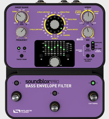 Soundblox Pro Bass Envelope Filter представляет собой результат эволюции очень популярного предшественника, Soundblox BEF. Как и прежде, в нем 22 различных типа фильтров, в том числе 2-х и 4-х полосные пропускающие фильтры НЧ, однопиковые и трехпиковые фильтры, узкополосные вырезающие фильтры, а также фазер. Каждый из них может быть дополнительно настроен с помощью ряда опций: положительной/отрицательной развертки, выбора диапазона развертки фильтра, времени атаки и затухания, выбора частотного диапазона. В этой версии Pro, пользователи могут выбрать один из четырех различных источников модуляции, включая стандартные регуляторы фильтра огибающей, выбора формы НЧ диапазона, пассивную педаль экспрессии и кольцо контроллера движения Hot Hand. Педаль экспрессии может быть использована как для контроля модуляции фильтра как в стандартной Wah педали, так и иных параметров, включая форму диапазона, выбор эффекта, задержку НЧ и многих других. Как и прочие педали серии Pro, BEF оснащен 3-мя кнопками для переключения 6-ти пользовательских пресетов. Одна из кнопок управляет функцией Тap для установки времени задержки НЧ. Основные характеристики Soundblox Pro Bass Envelope Filter: • 22 фильтра, в том числе 2-х и 4-х полосные пропускающие фильтры НЧ, одно- и трехпиковые фильтры, узкополосные вырезающие фильтры, а также фазер. • Положительная и отрицательная развертка фильтра в различных вариантах и с различной чувствительностью. • Регулятор количества чистого и обработанного сигнала в миксе, специальный алгоритм исключает потерю НЧ. • 4 источника модуляции, в том числе регуляторы фильтра огибающей, LFO, педаль экспрессии и Hot Hand. • 6 пользовательских пресетов: простые в настройке пресеты группируются в 2 банках и переключаются с помощью 3 кнопок педали. • 7-ми полосный эквалайзер: ультраточный эквалайзер для тонкой настройки тона. • Внешнее управление: вход педали экспрессии и MIDI-вход предоставляют возможность внешнего доступа к настройкам педали. • Как и все педали Soundblox, совместима со всеми Hot Hand контроллерами, что значительно расширяет возможности использования. • Активный аналоговый байпас: сигнал направляется в обход DSP процессора, а активный вход обеспечивает его прохождение без каких либо потерь качества. https://www.youtube.com/watch?v=99AuyfU3wBU состояние – хорошее возможен обмен (предлагайте варианты) отправлю по Украине Цена - 200$ ICQ: 361шесть17шесть73 |